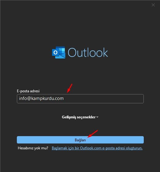 Outlook'u açtıktan sonra, aşağıdaki adımları izleyerek yeni bir e-posta hesabı ekleyin:
